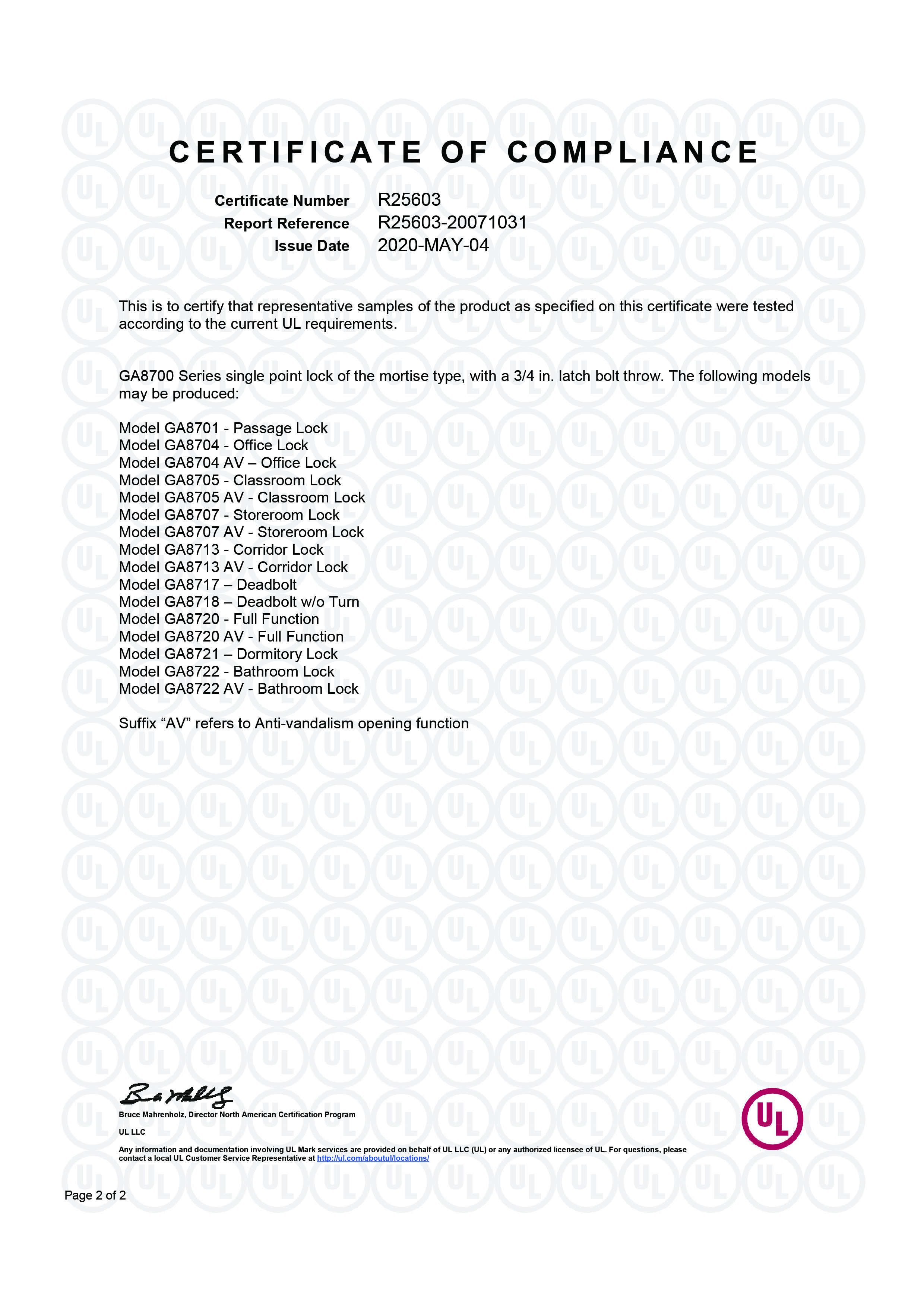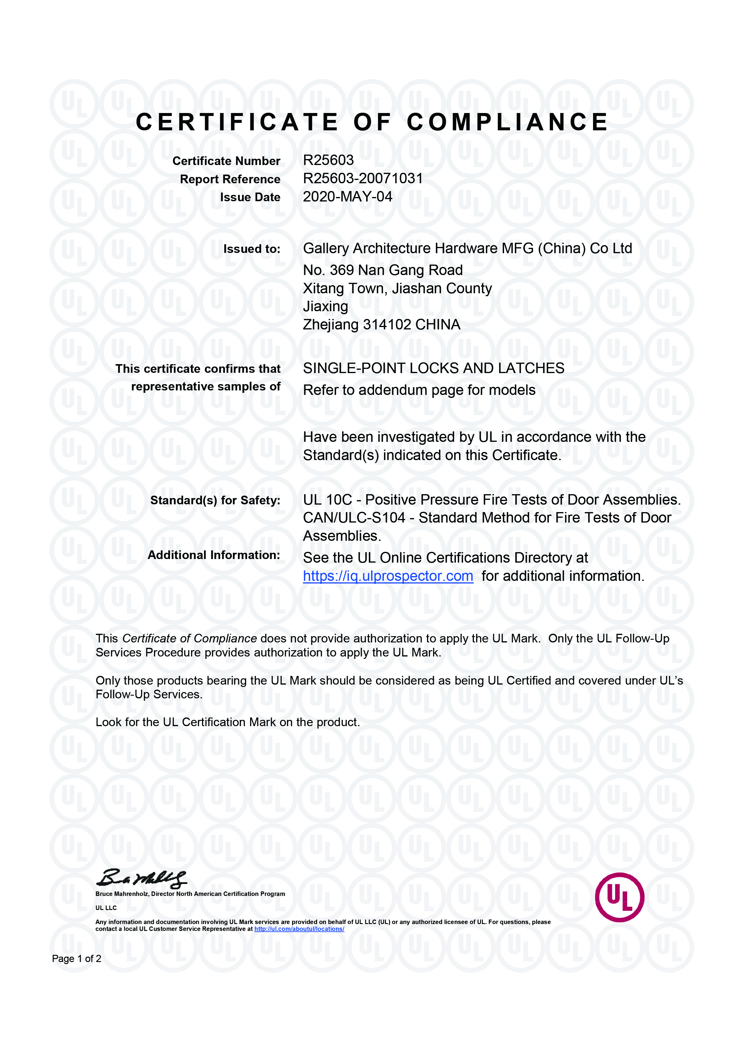 浙江堅(jiān)迪五金制造有限公司始建于 1995 年。自 2003 開始,公司致力于高標(biāo)準(zhǔn)商業(yè)鎖的研發(fā)工作,并于 2006 及 2007 年,8700 插芯鎖系列獲得美國(guó)國(guó)家標(biāo)準(zhǔn) ANSI A 156.13-2005 一級(jí)、ANSI A 156.2-2003 二級(jí)和美國(guó) UL 10C3 小時(shí)防火測(cè)試認(rèn)證。自 1998 年以來,公司不斷提升產(chǎn)品和客戶服務(wù)品質(zhì),并獲得了 ISO 9001 的認(rèn)證。